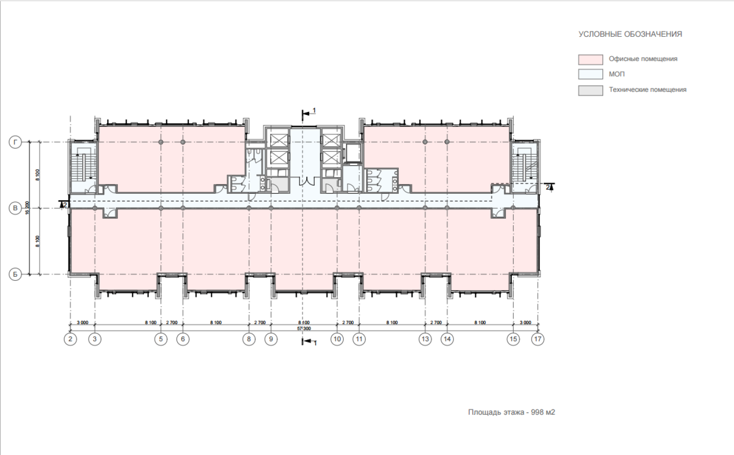 3-7 этажи - административные общая площадь этажа 998 кв.м., высота потолка 3,45 метра