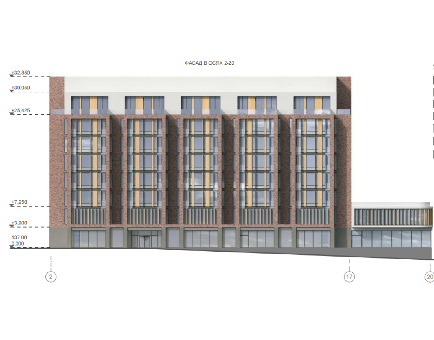 1-й этаж - входная группа в здание и зона ритейла общей площадью 1 297 кв.м. высота потолков 4,5 метра