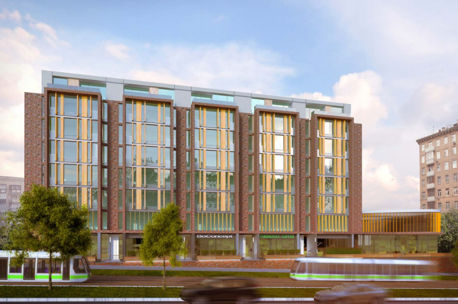 1-й этаж - входная группа в здание и зона ритейла общей площадью 1 297 кв.м. высота потолков 4,5 метра